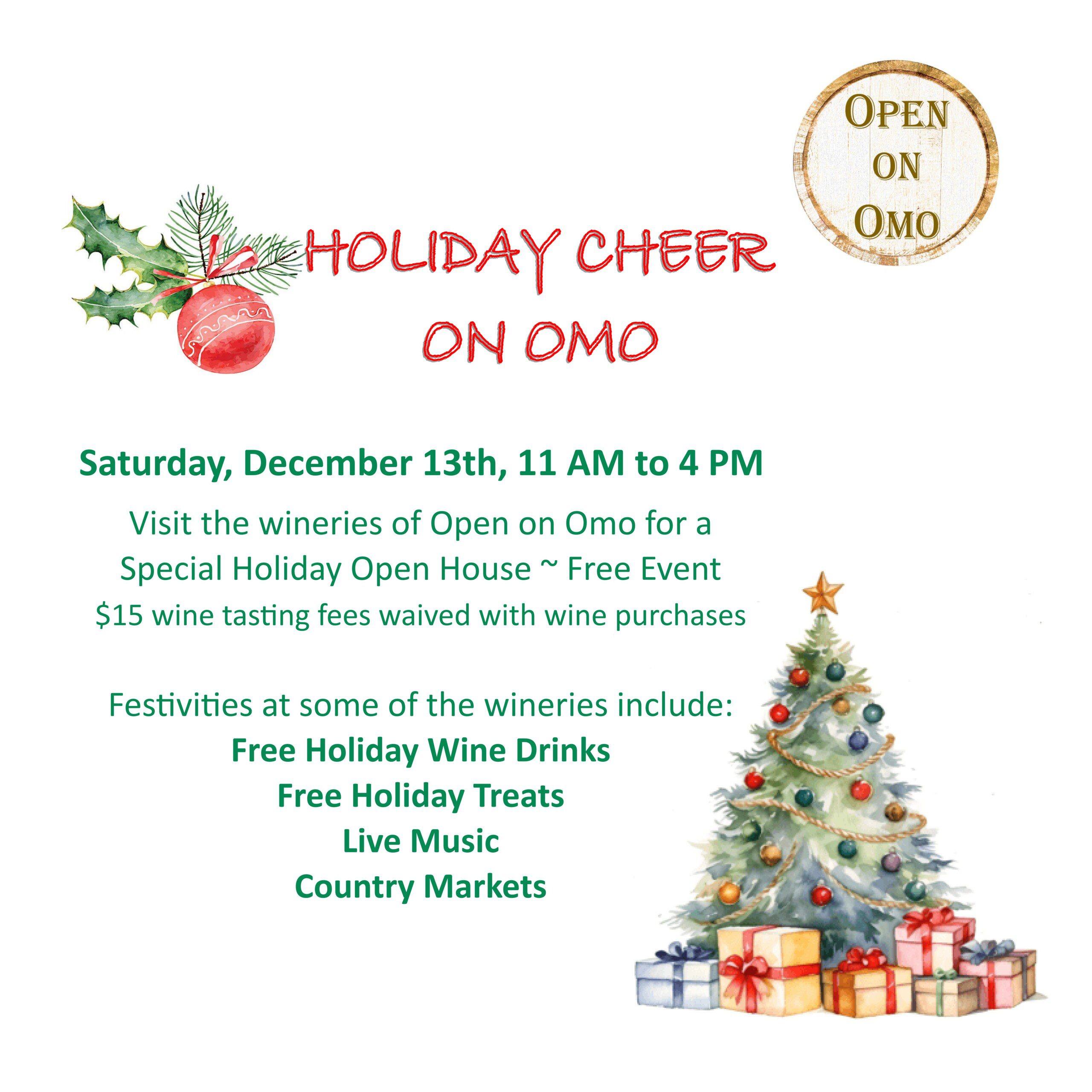 Golden Leaves Vineyard & Winery 3625 Omo Ranch, Somerset, CA, United StatesHoliday open house by wineries on Omo Ranch Rd. Shop local arts & craft vendors while enjoying complimentary holiday wine drinks, food, and music at some locations.