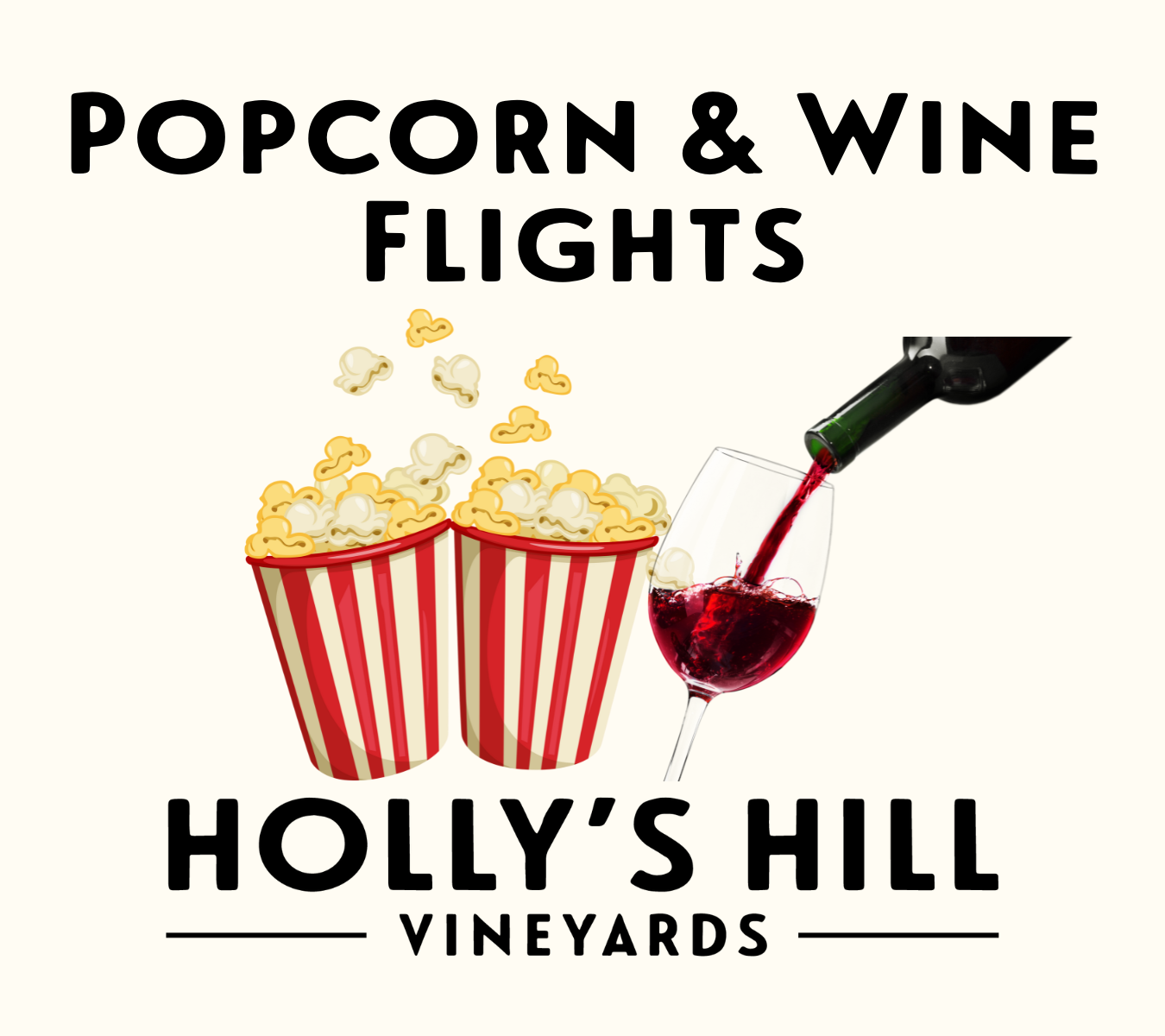 Join us for a weekend of Popcorn & Wine Flights, where each artisan popcorn flavor is paired with a Holly’s Hill wine selected to highlight its texture, spice, and balance. The combinations might surprise you, but the harmony is unmistakable. Up your game for the holiday movie season ahead! Your flight includes: Truffle, Sour Cream