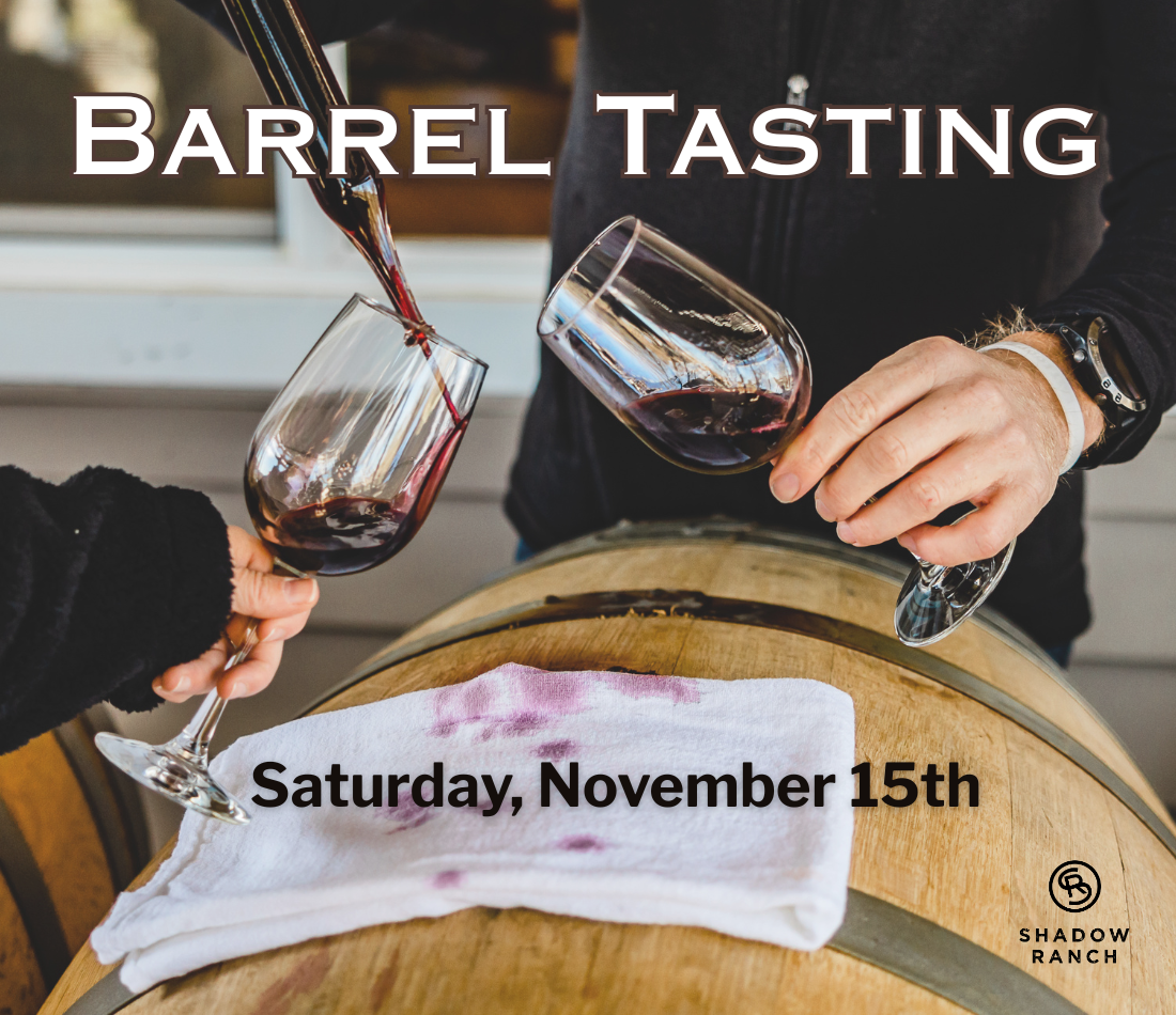Shadow Ranch Vineyards 7050 Fair Play Road, Fair Play, CA, United StatesCome by on Saturday, November 15th for a chance to taste upcoming Shadow Ranch wines straight from the barrel! Winemaker Sam Patterson will be there to pour two new wines for you. You will also have the opportunity to purchase futures on these great new wines! https://shadowranch.orderport.net/reservations/11808/Shadow-Ranch/booking